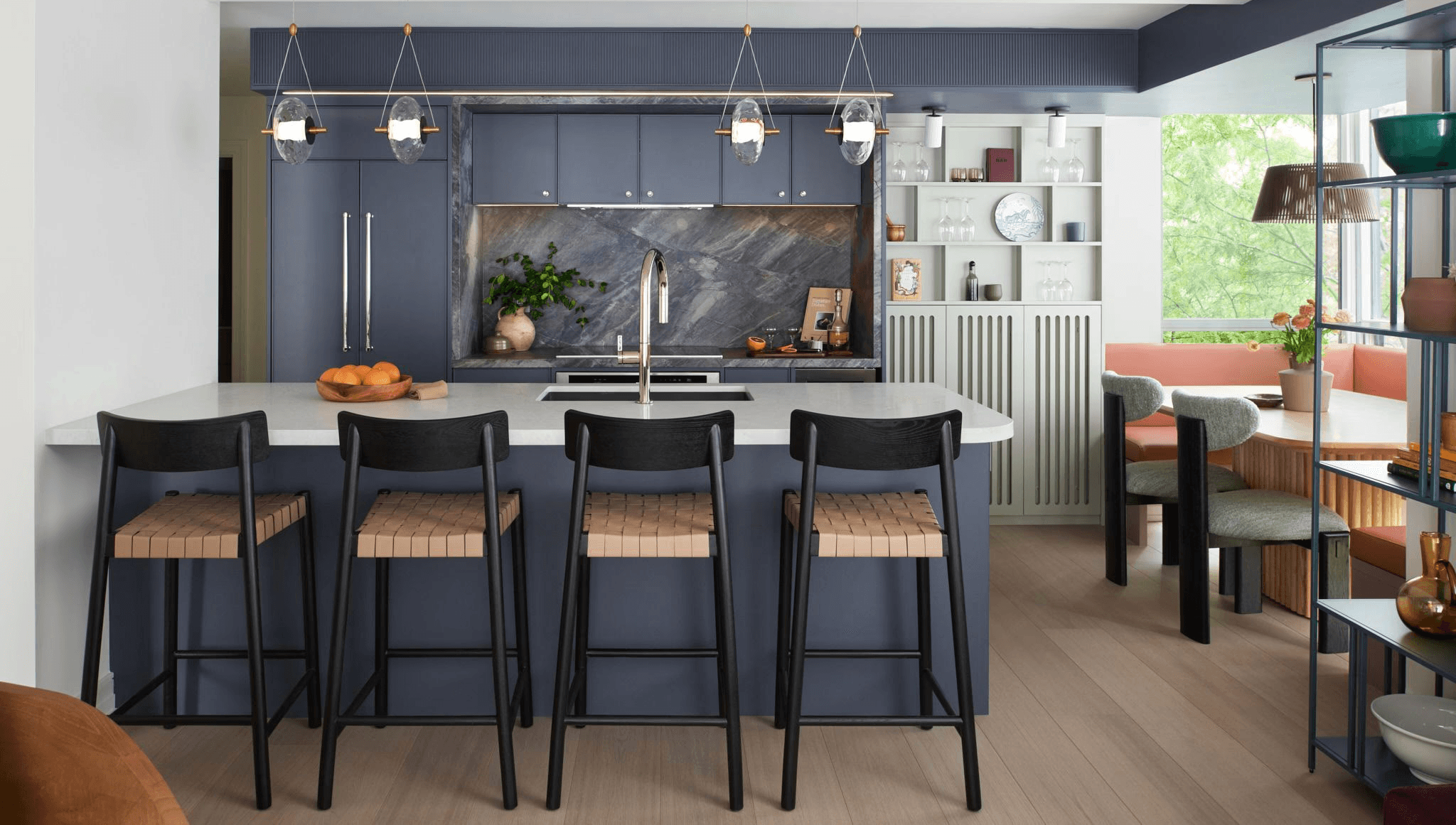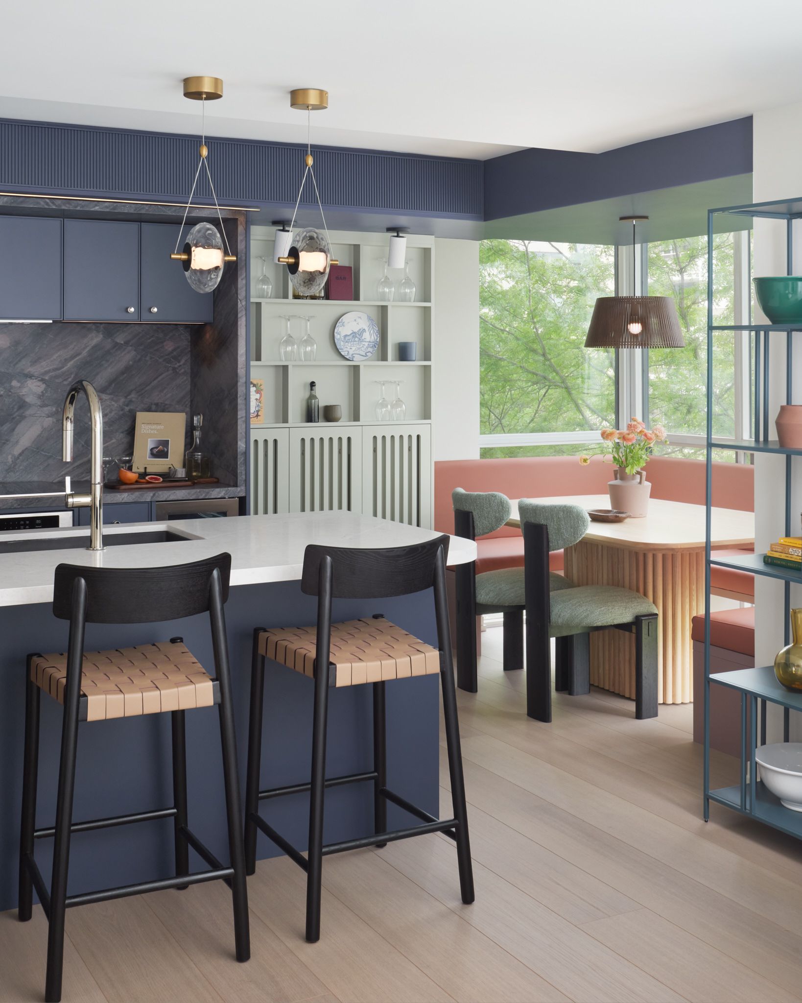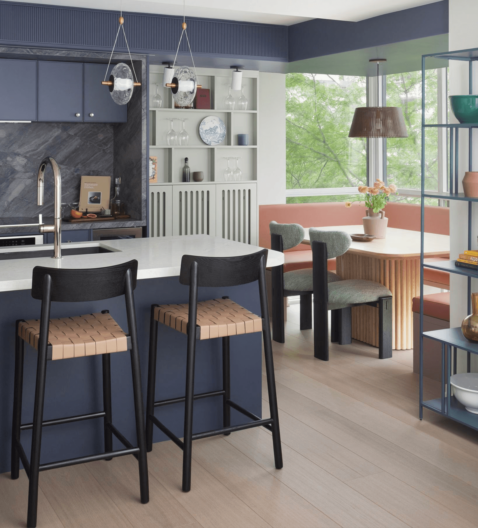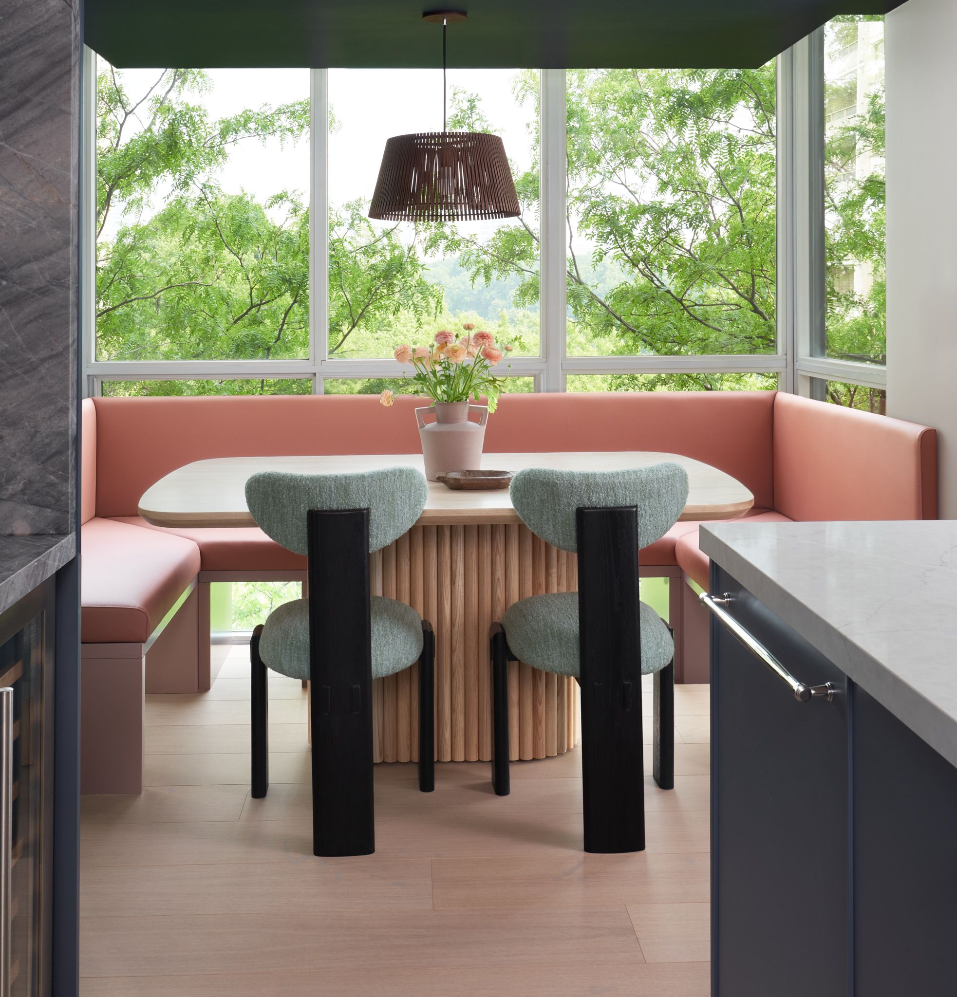 One of our favourite design details is the custom floating banquette positioned along the windows which maximizes seating but also frames the serene treetop views. This design detail transforms a simple dining nook into a destination within the home, perfect for gathering friends and family.