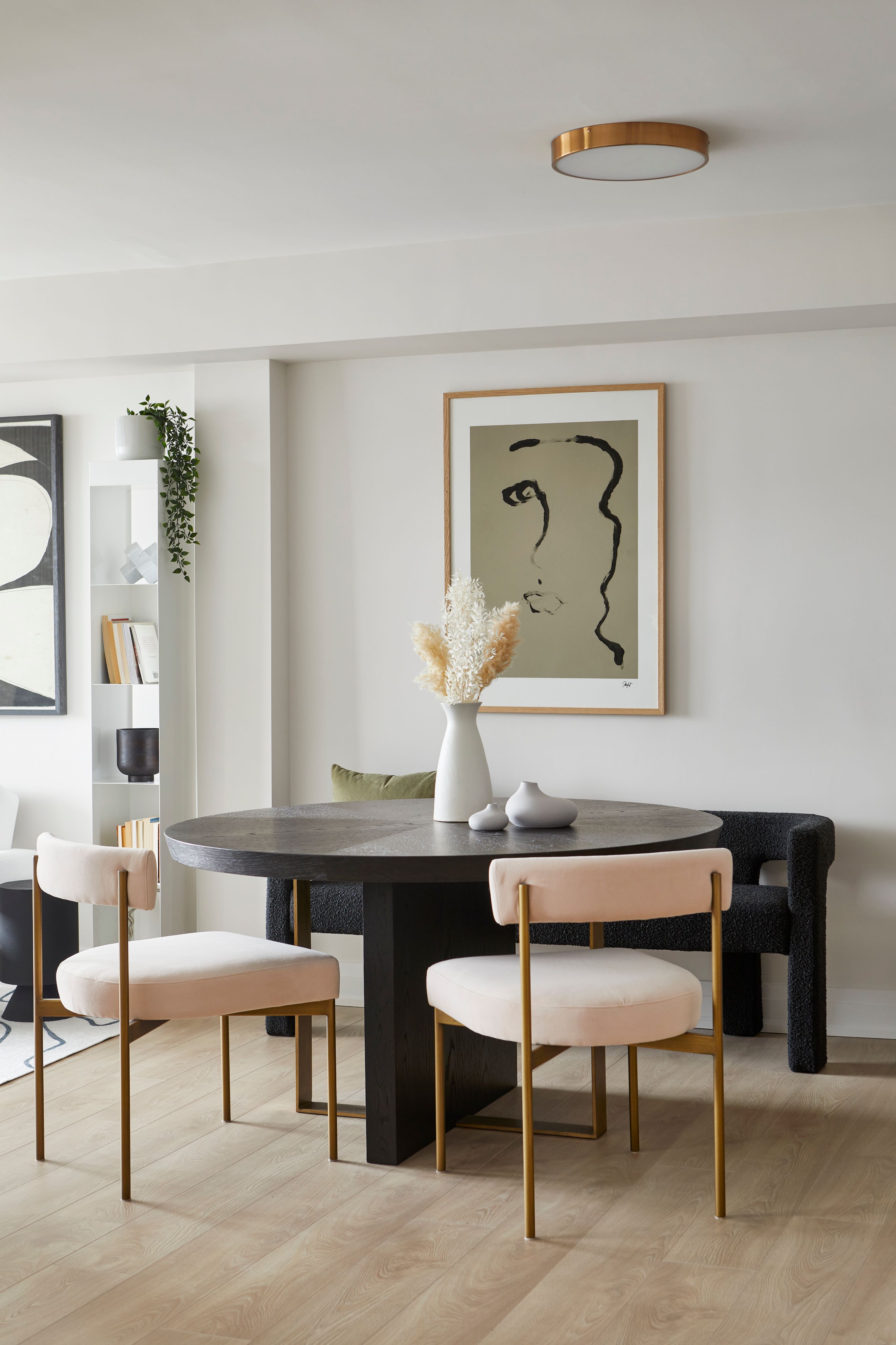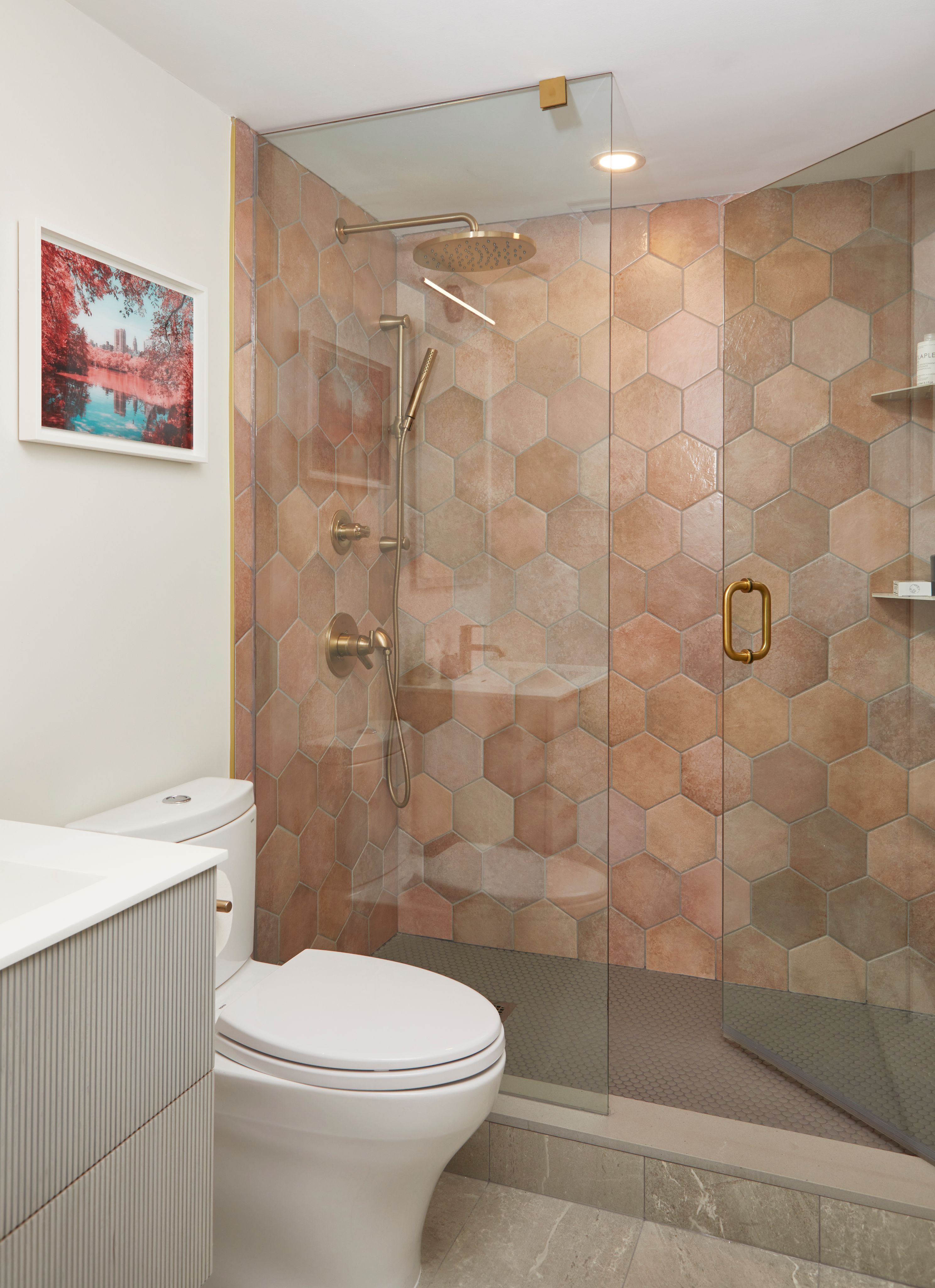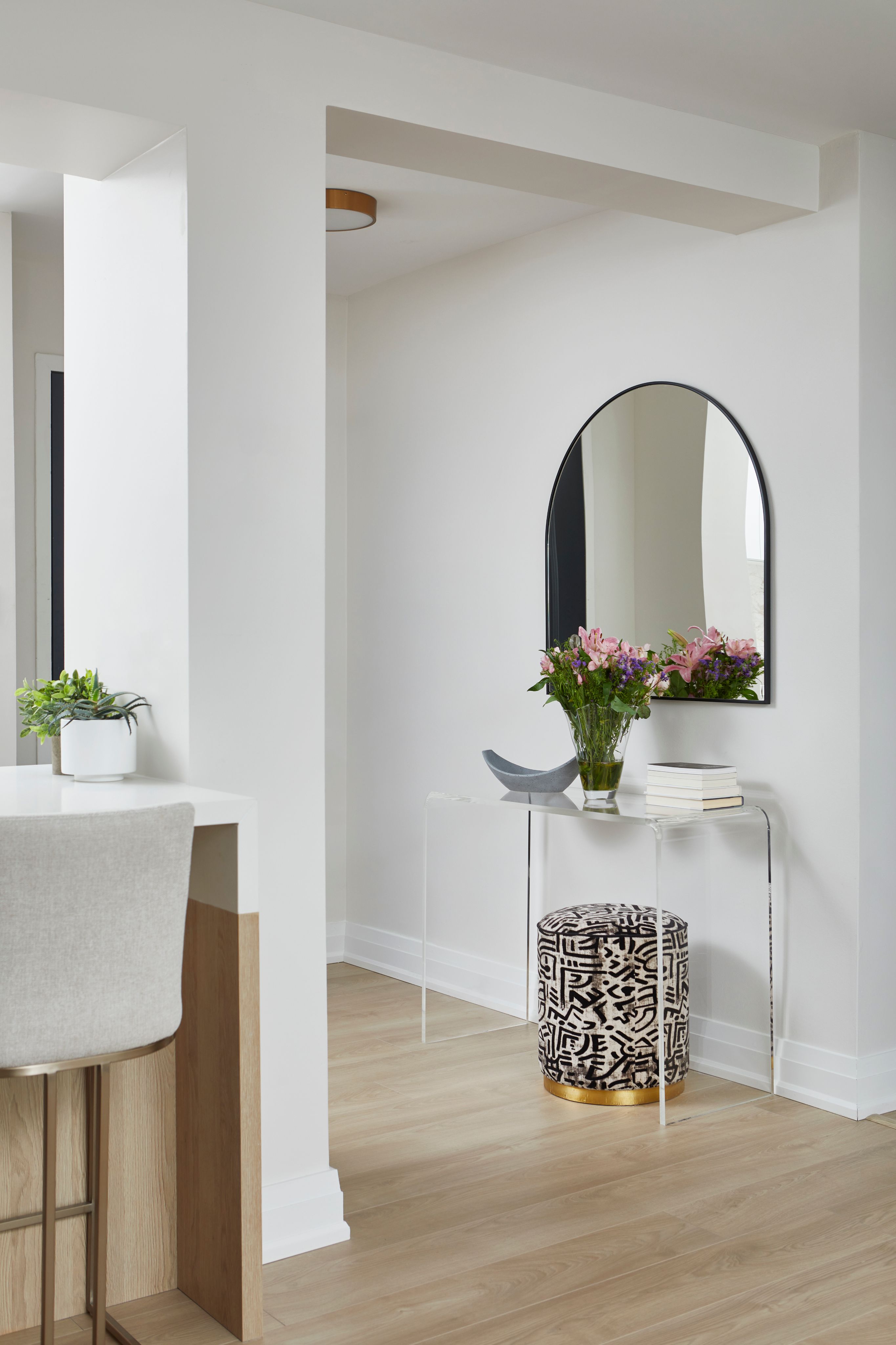 In the bathrooms, statement tiles and fluting details were introduced to enhance texture and dimension, adding a touch of luxury to these intimate spaces. To complete the transformation, we applied warmer paint tones, installed custom drapery, and curated a selection of contemporary furniture pieces to harmonize with the modern aesthetic of the interior.